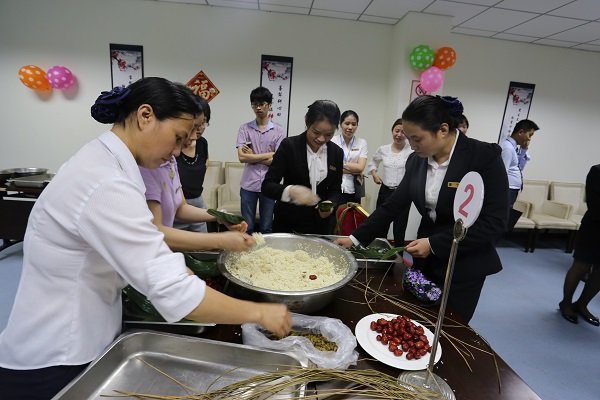 端午節,粽情濃。粽子是中華民族的傳統美食,在端午節包粽子更是流傳已久的節日習俗。為迎接端午佳節的到來,6月10日下午三點半,由曠遠錦江國際酒店人事部主辦的包粽子比賽在酒店員工培訓室火熱開賽。