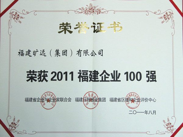 2011年08月 福建曠遠集團榮膺“2011福建企業100強”