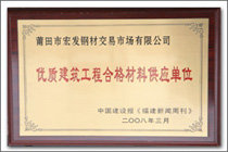 2005年04月 莆田市宏發鋼材交易市場有限公司被評為第三屆“全國誠信單位光榮榜”上榜榮譽單位