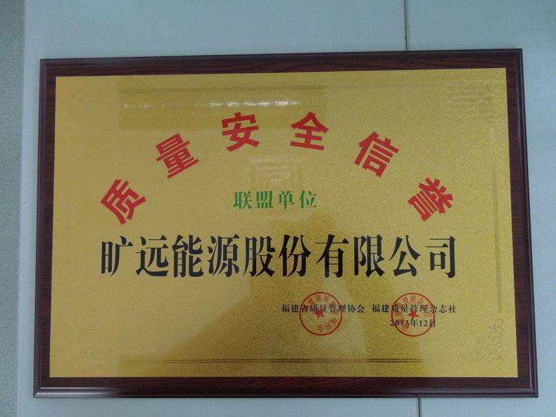 2013年12月 曠遠能源被福建省質量管理協會與福建省質量管理雜誌社評為“質量安全信譽聯盟單位”