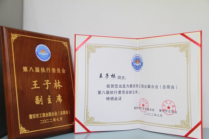 2022年07月 王子林董事長當選莆田市工商業聯合會(總商會)第八屆執行委員會副主席