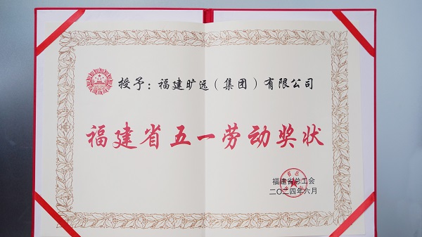 2024年07月 福建曠遠(集團)有限公司榮獲福建省總工會授予“福建省五一勞動獎狀”榮譽