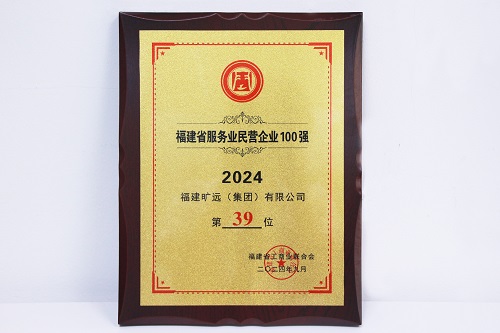 2024年09月 福建曠遠(集團)有限公司榮登“福建省服務業民營企業100強”榜單第39位、榮獲“福建省民營企業責任100佳”稱號