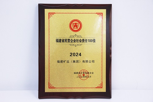 2025年12月 曠遠能源股份有限公司榮獲“福建省民營企業社會責任百佳”榮譽稱號