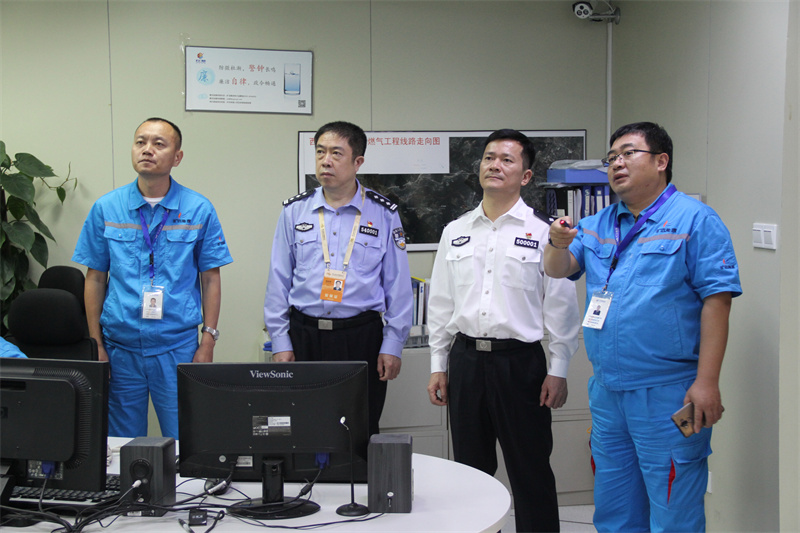 為確保佛教論壇安保維穩,以及城鎮燃氣安全營運,2018年10月25日上午,莆田市副市長、市公安局局長陳楓攜荔城公安分局局長、督察長詹國榮等相關部門領導蒞臨曠遠能源進行工作調研,在曠遠能源股份有限各公司總裁薑升科、副總裁黃劍鋒的陪同下,至SCADA監控中心查看各項監控畫麵和數據。曠遠能源總裁薑升科詳細介紹了公司運用管網地理信息係統、SCADA係統和遠程壓力監控係統等高科技手段對管網、場站和用戶端運行..