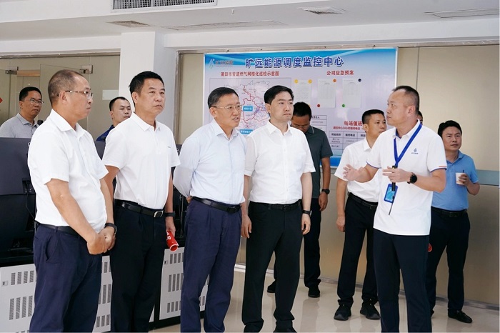 6月4日,省住建廳副廳長李智勇一行蒞臨曠遠能源股份有限公司調研指導工作。曠遠能源常務副總裁黃劍鋒、莆田燃氣事業部總經理柯軍等陪同。 李副廳長一行來到曠遠能源調度中心,通過觀看SCADA、GIS、壓(ya)力(li)檢(jian)測(ce)等(deng)智(zhi)慧(hui)燃(ran)氣(qi)係(xi)統(tong)的(de)現(xian)場(chang)演(yan)示(shi),對(dui)城(cheng)鎮(zhen)燃(ran)氣(qi)安(an)全(quan)運(yun)營(ying)情(qing)況(kuang)有(you)了(le)全(quan)麵(mian)的(de)了(le)解(jie)。隨(sui)後(hou),信(xin)息(xi)部(bu)曾(zeng)智(zhi)偉(wei)總(zong)監(jian)詳(xiang)細(xi)介(jie)紹(shao)了(le)公(gong)司(si)燃(ran)氣(qi)係(xi)統(tong)與(yu)莆(pu)田(tian)數(shu)字(zi)“一張圖”的對接情況,展示了智能巡線、入戶安檢..