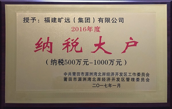 曠遠集團榮獲2016年度“納稅大戶”稱號