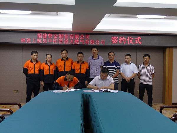 2017年6月27日下午四點三十分,福建紫金銅業有限公司、福建上杭縣中陽管道天然氣有限公司合作簽約儀式在上杭大酒店隆重舉行,紫金銅業總經理周建輝、上杭中陽總經理向榮等領導參加簽字儀式,雙方分別簽訂了天然氣供氣及工程施工合同。