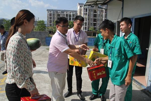 烈(lie)日(ri)當(dang)空(kong),酷(ku)暑(shu)難(nan)耐(nai),為(wei)切(qie)實(shi)保(bao)障(zhang)一(yi)線(xian)員(yuan)工(gong)在(zai)生(sheng)產(chan)經(jing)營(ying)過(guo)程(cheng)中(zhong)的(de)職(zhi)業(ye)安(an)全(quan)與(yu)身(shen)心(xin)健(jian)康(kang),體(ti)現(xian)集(ji)團(tuan)人(ren)文(wen)關(guan)懷(huai),確(que)保(bao)高(gao)溫(wen)期(qi)間(jian)防(fang)暑(shu)降(jiang)溫(wen)工(gong)作(zuo)落(luo)到(dao)實(shi)處(chu),集(ji)團(tuan)於(yu)7月份開展了高溫慰問活動。