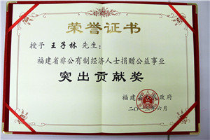 “閩商建設海西突出貢獻獎”和“福建省非公有製經濟人士捐贈公益事業突出貢獻獎”。