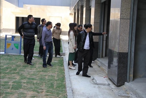 2013年12月2日上午,在集團董事長王子林、副總裁兼房地產總經理王光忠及董事長助理熊燕芳的帶領下,由集團領導層所組成的驗收組來到東方銀座項目,對幹掛石材、入戶大堂吊頂及售樓中心精裝修進行檢查驗收。