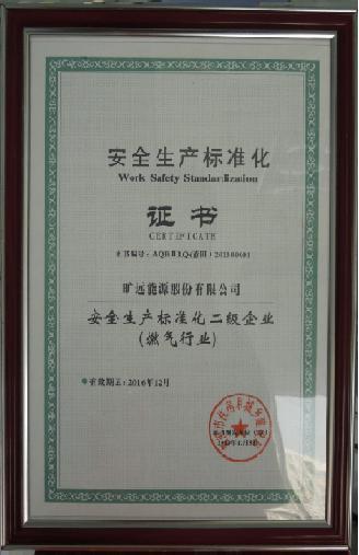 熱烈祝賀曠遠能源獲“安全生產標準化二級企業”榮譽稱號
