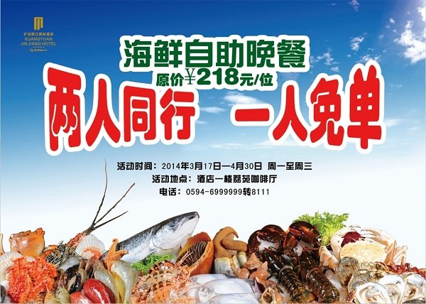曠遠錦江國際酒店推出海鮮自助晚餐“兩人同行 一人免單”特惠活動