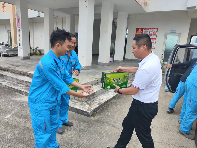 另外,南豐曠遠能源有限公司、上杭曠遠能源有限公司管理團隊受曠遠集團工會委托,也紛紛給奮戰在一線的員工送上了防暑藥品、清涼物資,傳遞集團對一線員工的關懷與問候。