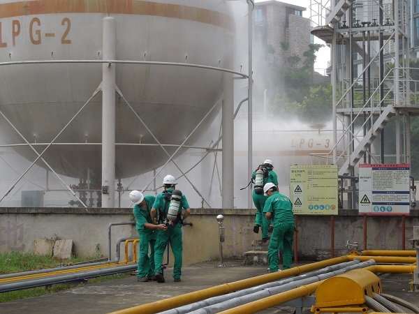 2014年6月18日下午15:30,曠遠能源股份有限公司在生產部氣源廠開展關於LPG儲罐法蘭泄漏應急處理演練。