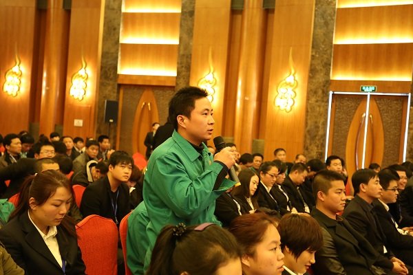 大會在上午九點五十分進入第二個環節:員工提問。會上,與會員工針對集團發展、企業文化、經營管理、福利體係及個人想法等,積極與台上的集團高管互動。通過互動交流方式,傾聽員工心聲,拉近了領導與員工的距離。因會上員工踴躍互動,反響熱烈,原定於中午十二點三十分結束的議程,延遲至下午一點十五分結束。