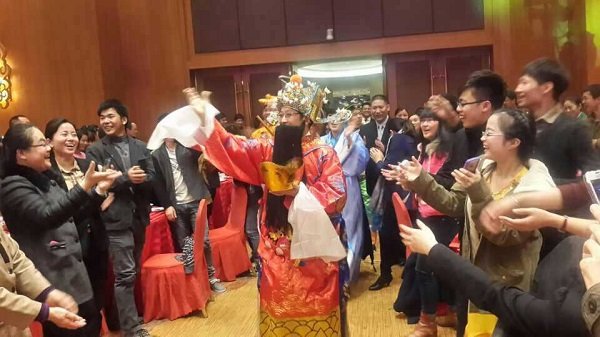 迎(ying)春(chun)晚(wan)會(hui)以(yi)集(ji)團(tuan)高(gao)管(guan)變(bian)裝(zhuang)登(deng)台(tai)開(kai)場(chang),高(gao)管(guan)們(men)一(yi)改(gai)往(wang)日(ri)工(gong)作(zuo)中(zhong)的(de)嚴(yan)謹(jin)形(xing)象(xiang),或(huo)反(fan)串(chuan),或(huo)搞(gao)笑(xiao),一(yi)登(deng)場(chang)便(bian)炒(chao)熱(re)了(le)現(xian)場(chang)氣(qi)氛(fen),隨(sui)後(hou),集(ji)團(tuan)董(dong)事(shi)長(chang)王(wang)子(zi)林(lin)先(xian)生(sheng)以(yi)財(cai)神(shen)爺(ye)形(xing)象(xiang),手(shou)捧(peng)金(jin)元(yuan)寶(bao)出(chu)現(xian)在(zai)會(hui)場(chang),從(cong)進(jin)口(kou)處(chu)開(kai)始(shi)一(yi)路(lu)揮(hui)灑(sa)糖(tang)果(guo)與(yu)紅(hong)包(bao),現(xian)場(chang)頓(dun)時(shi)一(yi)片(pian)沸(fei)騰(teng)。
