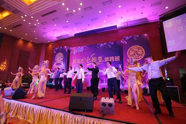 晚會以氣勢磅礴的《威風龍鼓》敲響了第一篇章“曠·立世”。隨後酒店同事一曲《等待》,帶著現場觀眾進入春天的暢想;舞台劇《夢回唐朝克拉傳》將今年爆紅的武則天加入網絡流行元素,演繹得惟妙惟肖;由曠遠能源男神們打造的印度舞《吉米吉米》顛覆傳統,反串出演,引得台下陣陣捧腹大笑;環保時裝秀利用紙張與塑料的結合,為我們呈現了環保新理念。晚會第二篇章“創·新紀”以年代秀《60 70 80 90》歌曲串燒帶著現場觀眾回到屬於自己的年代;傣族舞《竹林深處》讓觀眾仿佛置身於竹林之中;隨後的《中國範兒》、《Nobel girl》、《好看》、《舞動青春》、《小蘋果》等一連串舞蹈無處不展現著青春活力與激情。晚會的最後一個篇章“遠·天下”,以《新白娘子》反串版開篇,顛覆經典之作;京劇《貴妃醉酒》演員表演結束後觀眾意猶未盡,表演者再次登台清唱;南豐儺舞《開山》讓現場觀眾親眼目睹來自地方特色的舞蹈;各子公司新任總經理上台朗誦詩歌《福建曠遠集團賦》,再次展現曠遠的超凡魅力;歌曲《夫妻雙雙把家還》晚會現場再現黃梅戲《天仙配》佳話;一曲《埃及豔後》將晚會推向高潮,集團高管在舞蹈表演結束後,紛紛上台學藝,引得台下觀眾掌聲不斷;隨著一曲合唱《相親相愛一家人》進入晚會尾聲。晚會現場除了節目表演,還穿插了互動遊戲和抽獎環節。