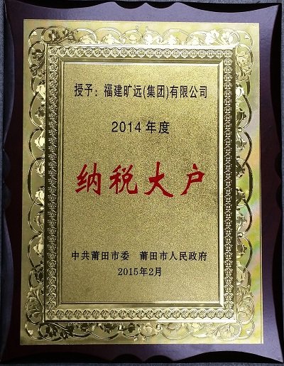 近日,福建曠遠(集團)有限公司榮獲中共莆田市委、莆田市人民政府授予“2014年度納稅大戶”榮譽稱號。