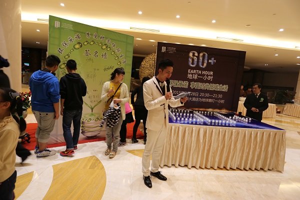 當晚20:30—21:30,為了響應“地球一小時”,為了保護“莆田藍”,酒店關閉了樓體外圍泛光照明及公共區域不必要的燈光,大堂正中央的“60+”吸引了許多賓客駐足留影,也紛紛加入到活動中,充分支持酒店一小時熄燈活動。更有不少賓客表示,“以前不知道原來國際上還有這樣的活動,現在知道了,非常有意義,之後也要為環保工作貢獻自己微薄的力量”。