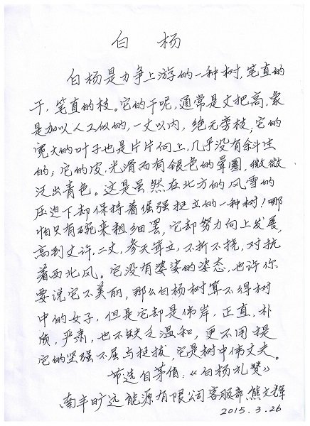 為營造良好的學習氛圍,提高員工的書寫質量,增強員工綜合素質,提升企業文化品位,自2015年3月20日起,集團第一屆書法比賽正式啟動。3月20日至3月30日報名期間,共收到44個參賽作品,經初評後,共有25個作品入選並進入OA評選。截至4月10日,書法比賽完成OA票選,比賽最終結果以初評成績及OA票選為準。為確保比賽真實有效,4月13日至4月16日期間,集團總裁辦對入選參賽者進行了現場、視頻書寫確認。