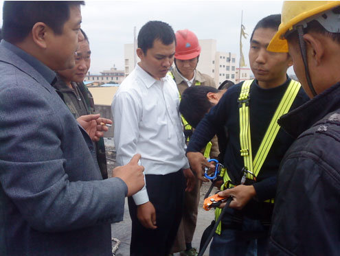 2009年11月23日,宏盛市政楊永剛總經理對市政全體員工進行安全教育。他說,“安an全quan生sheng產chan人ren人ren有you責ze,安an全quan生sheng產chan涉she及ji每mei家jia每mei戶hu,對dui安an全quan生sheng產chan我wo們men一yi定ding要yao切qie實shi做zuo到dao位wei,做zuo到dao點dian,要yao常chang抓zhua不bu懈xie,營ying造zao出chu一yi個ge安an全quan的de生sheng產chan施shi工gong氛fen圍wei”。之(zhi)後(hou),他(ta)通(tong)過(guo)親(qin)自(zi)示(shi)範(fan)新(xin)購(gou)置(zhi)的(de)高(gao)空(kong)作(zuo)業(ye)懸(xuan)掛(gua)安(an)全(quan)防(fang)護(hu)繩(sheng),為(wei)全(quan)體(ti)員(yuan)工(gong)進(jin)行(xing)安(an)全(quan)操(cao)作(zuo)規(gui)範(fan)培(pei)訓(xun)。在(zai)培(pei)訓(xun)過(guo)程(cheng)中(zhong),楊(yang)總(zong)經(jing)理(li)詳(xiang)細(xi)地(di)講(jiang)解(jie)了(le)安(an)全(quan)繩(sheng)的(de)操(cao)作(zuo)注(zhu)意(yi)事(shi)項(xiang)和(he)安(an)全(quan)防(fang)護(hu)的(de)重(zhong)要(yao)性(xing),並(bing)讓(rang)每(mei)位(wei)施(shi)工(gong)人(ren)員(yuan)正(zheng)確(que)了(le)解(jie)了(le)高(gao)空(kong)作(zuo)業(ye)懸(xuan)掛(gua)安(an)全(quan)防(fang)護(hu)繩(sheng)的(de)具(ju)體(ti)操(cao)作(zuo)要(yao)點(dian)。通(tong)過(guo)親(qin)自(zi)示(shi)範(fan),所(suo)有(you)員(yuan)工(gong)都(dou)更(geng)直(zhi)接(jie)地(di)掌(zhang)握(wo)了(le)各(ge)項(xiang)安(an)全(quan)操(cao)作(zuo)流(liu)程(cheng),達(da)到(dao)了(le)很(hen)好(hao)的(de)培(pei)訓(xun)效(xiao)果(guo)。