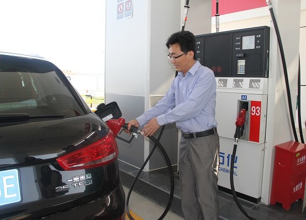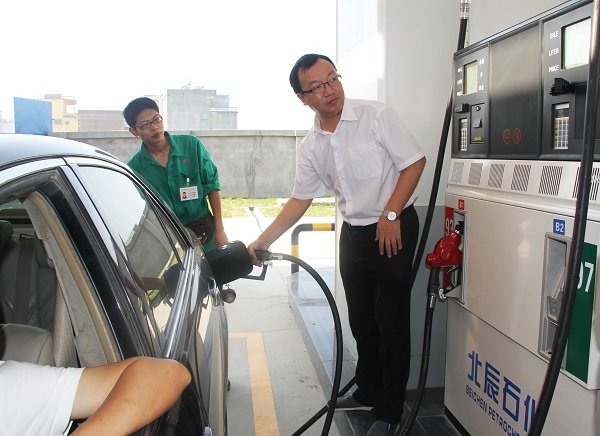 圖為北辰石化總經理蘭書彬為客戶加油