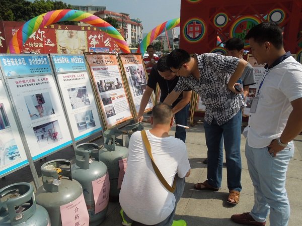 活(huo)動(dong)現(xian)場(chang),曠(kuang)遠(yuan)能(neng)源(yuan)宣(xuan)傳(chuan)人(ren)員(yuan)圍(wei)繞(rao)掌(zhang)握(wo)燃(ran)氣(qi)知(zhi)識(shi),提(ti)高(gao)安(an)全(quan)意(yi)識(shi)等(deng)宣(xuan)傳(chuan)重(zhong)點(dian),為(wei)前(qian)來(lai)谘(zi)詢(xun)的(de)市(shi)民(min)細(xi)心(xin)講(jiang)解(jie),並(bing)派(pai)發(fa)各(ge)類(lei)安(an)全(quan)宣(xuan)傳(chuan)單(dan),受(shou)到(dao)市(shi)民(min)的(de)歡(huan)迎(ying)。為(wei)使(shi)活(huo)動(dong)更(geng)生(sheng)動(dong)有(you)效(xiao),曠(kuang)遠(yuan)能(neng)源(yuan)特(te)地(di)從(cong)氣(qi)源(yuan)廠(chang)運(yun)來(lai)數(shu)隻(zhi)不(bu)同(tong)類(lei)型(xing)的(de)瓶(ping)裝(zhuang)氣(qi),通(tong)過(guo)現(xian)場(chang)的(de)具(ju)體(ti)講(jiang)解(jie),讓(rang)市(shi)民(min)切(qie)實(shi)感(gan)受(shou)到(dao)曠(kuang)遠(yuan)能(neng)源(yuan)提(ti)供(gong)的(de)正(zheng)規(gui)瓶(ping)裝(zhuang)氣(qi)的(de)安(an)全(quan)性(xing)和(he)可(ke)靠(kao)性(xing)。本(ben)次(ci)活(huo)動(dong)的(de)開(kai)展(zhan),進(jin)一(yi)步(bu)提(ti)高(gao)了(le)社(she)會(hui)公(gong)眾(zhong)對(dui)曠(kuang)遠(yuan)能(neng)源(yuan)產(chan)品(pin)的(de)了(le)解(jie),加(jia)強(qiang)了(le)全(quan)社(she)會(hui)對(dui)燃(ran)氣(qi)安(an)全(quan)生(sheng)產(chan)工(gong)作(zuo)的(de)關(guan)注(zhu)度(du)和(he)支(zhi)持(chi)度(du)。