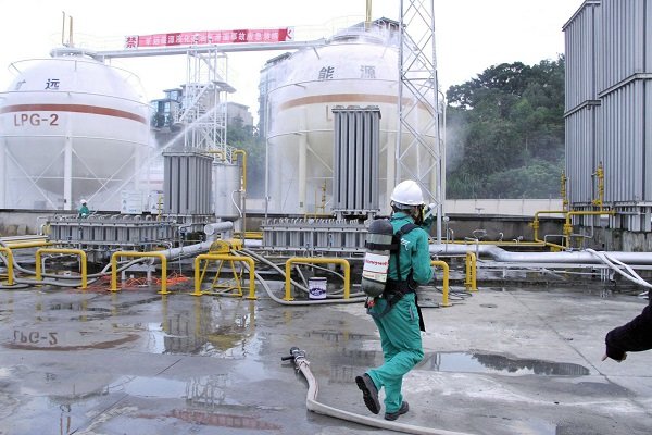 weijinyibujiaqianganquanshengchanyingjiguanligongzuo,tigaoranqixieloutufashigudeyingjichuzhinengli,jianyanguanquxiaofangsheshideyouxiaoxing,zuidaxiandudijianshaoranqixieloushigujiqizaochengderenyuanshangwanghecaichansunshi, 2015年12月10日下午四時許,曠遠能源聯合莆田市住建局、市公安局、市質監局、市消防支隊、霞林派出所、莆田電視台等單位,在城廂氣化混氣灌瓶站共同組織開展“液化石油氣泄漏事故應急演練”。曠遠能源總經理葉春、副總經理黃劍鋒、副總經理胡惠、總助陳麗群、總助施偉江及相關部門主管均到達現場全程參與演練,全市11家燃氣企業代表獲邀至現場觀摩。