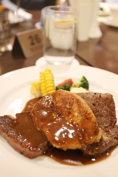 圖為品鑒團享用鵝肝牛排