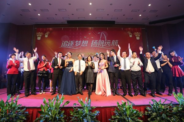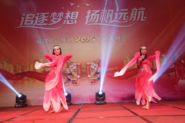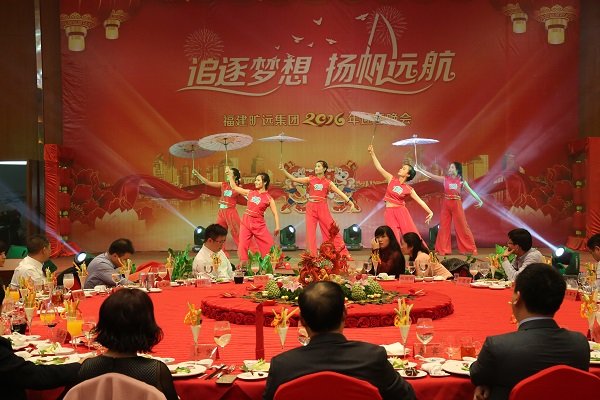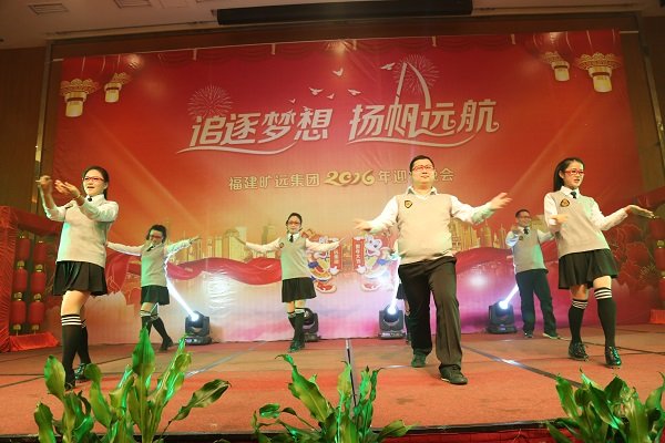 2016年1月18日,晚上七點整,曠遠集團“追逐夢想 揚帆遠航”2016年迎春晚會在曠遠錦江國際酒店錦繡廳、荔城廳隆重舉行,集團董事長王子林攜夫人,特邀嘉賓以及曠遠集團共計600餘名員工齊聚一堂,喜迎新春佳節的到來。 晚(wan)會(hui)開(kai)始(shi)前(qian),王(wang)子(zi)林(lin)董(dong)事(shi)長(chang)上(shang)台(tai)發(fa)表(biao)祝(zhu)酒(jiu)辭(ci)。王(wang)董(dong)首(shou)先(xian)代(dai)表(biao)董(dong)事(shi)會(hui)及(ji)全(quan)體(ti)股(gu)東(dong)向(xiang)全(quan)體(ti)曠(kuang)遠(yuan)人(ren)及(ji)其(qi)家(jia)屬(shu)致(zhi)以(yi)新(xin)春(chun)的(de)祝(zhu)福(fu),並(bing)向(xiang)晚(wan)會(hui)期(qi)間(jian)堅(jian)守(shou)崗(gang)位(wei)的(de)值(zhi)班(ban)人(ren)員(yuan)致(zhi)以(yi)敬(jing)意(yi)。王(wang)董(dong)說(shuo),今(jin)年(nian)曠(kuang)遠(yuan)集(ji)團(tuan)走(zou)進(jin)了(le)第(di)17geniantou,duiyuyiluzoulaiyujituangongtongbingjianzuozhandekuangyuanren,tabiaoshiyouzhongdiganxie,bingxiwangquantikuangyuanrenzaijiezaili,qixinxieligongzhukuangyuanhuihuangdemingtian。 手執油紙傘的酒店前廳部美女們的舞蹈《煙花三月》拉開了晚會第一篇章“曠遠·追夢”的序幕,帶著我們一同暢遊江南;緊接著,集團貿易事業部朱傑一曲《青花瓷》,為我們描繪出了一番詩情畫意;小品《到底該怨誰》將工作問題搬上了舞台解決,再次提醒了我們團隊合作的重要性;由長沙房地產營銷團隊帶來的熱辣舞蹈《gentlemen的一分一秒》熱絡了晚會氣氛,現場一片沸騰;隨後的四首歌曲串燒,歌手們更是為我們演繹了經典曲目。晚會第二篇章“曠遠·揚帆”以具有莆田文化特色的莆仙戲《春草闖堂》為開篇,酒店洗衣房阿姨們的精彩表演贏得台下陣陣掌聲;曠遠能源客服部的宮廷舞蹈《漢宮裳影》帶著我們穿越到漢朝,感受不一樣的文化;曠遠房地產同事們的一曲《朋友》道盡了友情的可貴,亦提醒我們珍惜攜手並肩的戰友;南豐萌萌噠同事們的舞蹈《感覺自己萌萌噠》為我們展現了青春活力與激情。晚會最後一個篇章“曠遠·遠航”,以長沙房地產王佳的薩克斯獨奏《春風》開篇,讓我們無不驚歎集團的臥虎藏龍;曠遠能源小鮮肉們的舞蹈《uptown funk》將晚會推向了高潮,集團特邀嘉賓及高管紛紛上台學習舞蹈動作,優美的舞姿贏得台下掌聲不斷;宏盛市政一曲《驚鴻舞》再次帶領我們感受宮廷舞蹈的魅力;曠遠能源仙遊分公司陳宗彬的獨唱《男人哭吧不是罪》將歌曲演繹得淋漓盡致;上杭客家妹們帶來的舞蹈《我是客家妹》為我們呈現了上杭特有的風俗舞蹈;隨著一曲大合唱《難忘今宵》晚會進入了尾聲。晚會現場除了節目表演,還穿插了互動遊戲和抽獎環節,晚會高潮處,集團董事長王子林、集團特邀嘉賓、部分高管更是上台獻唱,氣氛融洽且熱絡。 晚會最後,集團高管與部分表演人員上台合影留念,至此,曠遠集團2016年迎春晚會圓滿落下了帷幕。 圖為2016年迎春晚會董事長王子林上台致祝酒辭 圖為2016年迎春晚會節目表演現場 圖為2016年迎春晚會節目表演現場 圖為2016年迎春晚會節目表演現場 圖為2016年迎春晚會節目表演現場 圖為2016年迎春晚會節目表演現場 圖為2016年迎春晚會節目表演現場 圖為2016年迎春晚會節目表演現場 圖為2016年迎春晚會節目表演現場 圖為2016年迎春晚會節目表演現場 圖為2016年迎春晚會節目表演現場 圖為2016年迎春晚會節目表演現場 圖為2016年迎春晚會節目表演現場 圖為2016年迎春晚會節目表演現場 圖為2016年迎春晚會節目表演現場 圖為2016年迎春晚會節目表演現場 圖為2016年迎春晚會節目表演現場 圖為2016年迎春晚會節目表演現場 圖為2016年迎春晚會節目表演現場 圖為2016年迎春晚會抽獎環節