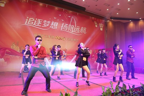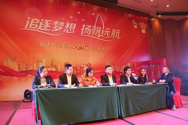 手執油紙傘的酒店前廳部美女們的舞蹈《煙花三月》拉開了晚會第一篇章“曠遠·追夢”的序幕,帶著我們一同暢遊江南;緊接著,集團貿易事業部朱傑一曲《青花瓷》,為我們描繪出了一番詩情畫意;小品《到底該怨誰》將工作問題搬上了舞台解決,再次提醒了我們團隊合作的重要性;由長沙房地產營銷團隊帶來的熱辣舞蹈《gentlemen的一分一秒》熱絡了晚會氣氛,現場一片沸騰;隨後的四首歌曲串燒,歌手們更是為我們演繹了經典曲目。晚會第二篇章“曠遠·揚帆”以具有莆田文化特色的莆仙戲《春草闖堂》為開篇,酒店洗衣房阿姨們的精彩表演贏得台下陣陣掌聲;曠遠能源客服部的宮廷舞蹈《漢宮裳影》帶著我們穿越到漢朝,感受不一樣的文化;曠遠房地產同事們的一曲《朋友》道盡了友情的可貴,亦提醒我們珍惜攜手並肩的戰友;南豐萌萌噠同事們的舞蹈《感覺自己萌萌噠》為我們展現了青春活力與激情。晚會最後一個篇章“曠遠·遠航”,以長沙房地產王佳的薩克斯獨奏《春風》開篇,讓我們無不驚歎集團的臥虎藏龍;曠遠能源小鮮肉們的舞蹈《uptown funk》將晚會推向了高潮,集團特邀嘉賓及高管紛紛上台學習舞蹈動作,優美的舞姿贏得台下掌聲不斷;宏盛市政一曲《驚鴻舞》再次帶領我們感受宮廷舞蹈的魅力;曠遠能源仙遊分公司陳宗彬的獨唱《男人哭吧不是罪》將歌曲演繹得淋漓盡致;上杭客家妹們帶來的舞蹈《我是客家妹》為我們呈現了上杭特有的風俗舞蹈;隨著一曲大合唱《難忘今宵》晚會進入了尾聲。晚會現場除了節目表演,還穿插了互動遊戲和抽獎環節,晚會高潮處,集團董事長王子林、集團特邀嘉賓、部分高管更是上台獻唱,氣氛融洽且熱絡。