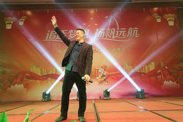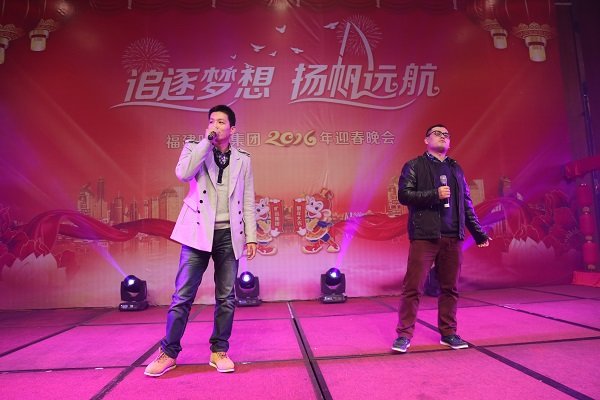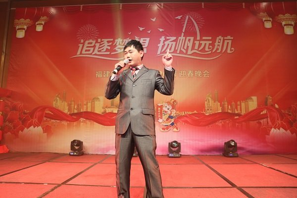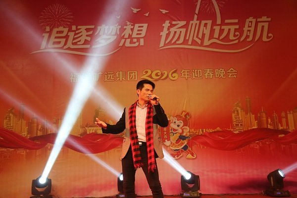 圖為2016年迎春晚會董事長王子林上台獻唱