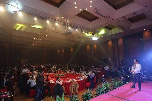 圖為2016年迎春晚會董事長王子林上台致祝酒辭