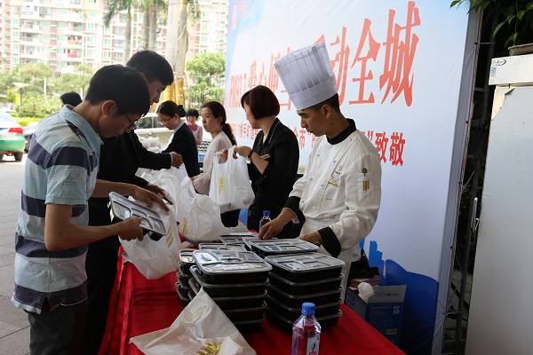 5月13日,曠遠錦江國際酒店攜手FM93.7開展“愛心便當 愛動全城”公益活動,現場免費派送200份愛心便當,為全市“的哥”、“的姐”送上一份愛的溫暖。派送的愛心午餐內有紅燒鮑魚、野生菌炒牛柳、香菇蒸土雞、大白菜炒油豆腐等,搭配營養合理。除此之外,更是為出租車師傅們準備了飲用水和紙巾,處處充滿著體貼與溫馨。
