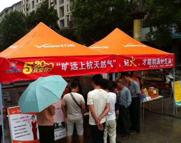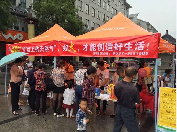 下(xia)午(wu)四(si)點(dian)整(zheng),上(shang)杭(hang)城(cheng)區(qu)細(xi)雨(yu)朦(meng)朧(long),在(zai)市(shi)場(chang)部(bu)經(jing)理(li)的(de)號(hao)召(zhao)下(xia),公(gong)司(si)小(xiao)夥(huo)伴(ban)們(men)積(ji)極(ji)主(zhu)動(dong)參(can)與(yu)本(ben)次(ci)宣(xuan)傳(chuan)推(tui)廣(guang)活(huo)動(dong)。由(you)於(yu)活(huo)動(dong)提(ti)前(qian)準(zhun)備(bei)充(chong)分(fen),活(huo)動(dong)現(xian)場(chang)剛(gang)搭(da)建(jian)好(hao)帳(zhang)篷(peng)、展架桌椅和橫幅,便引來無數市民圍觀。有人谘詢天然氣開戶報裝收費;有人了解燃氣灶具品牌及功能;還有人詢問天然氣安全使用常識等等。上杭公司小夥伴們熱情、耐心地為市民講解天然氣開戶及安全使用常識,並派送公司準備的打火機、購物袋等精美小禮品和宣傳資料。活動現場細雨紛飛,前來圍觀市民的積極性無不讓我們感受職責的神聖與責任之重大。