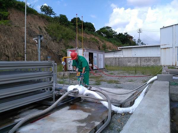 “安全責任重於泰山。忽視安全抓生產是火中取栗,脫離安全注求效益如水中撈月”。2016年6月21日9點30分左右,鯉南站值班人員在巡查時發現,LNG槽車出液管連接氣化器進液處法蘭墊片老化脆裂,產生大量LNG泄露,立即報告站長林建峰,林建峰趕至現場,判定需暫停LNG氣化供氣切換CNG供應以保證城區安全供氣和場站安全後,立即組織值班人員按照操作要求關閉槽車出液閥門及氣化器進液管閥門,並實施LNG/CNG切換,用CNG進行供氣。待LNG出液管段內LNG充(chong)分(fen)放(fang)散(san),管(guan)內(nei)無(wu)壓(ya)力(li),出(chu)液(ye)軟(ruan)管(guan)溫(wen)度(du)升(sheng)至(zhi)常(chang)溫(wen)後(hou),周(zhou)圍(wei)環(huan)境(jing)可(ke)燃(ran)氣(qi)體(ti)檢(jian)測(ce)符(fu)合(he)要(yao)求(qiu)後(hou)進(jin)行(xing)搶(qiang)修(xiu)。由(you)應(ying)急(ji)總(zong)指(zhi)揮(hui)安(an)全(quan)運(yun)營(ying)部(bu)經(jing)理(li)張(zhang)躍(yue)章(zhang)檢(jian)查(zha)搶(qiang)修(xiu)情(qing)況(kuang),確(que)認(ren)完(wan)好(hao),現場指揮下達恢複通氣指令。