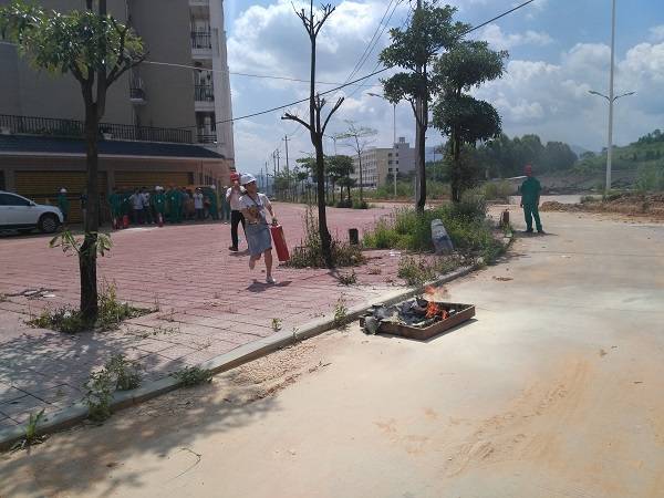 應急事故處置活動後,為了真正掌握好火災事故現場應急撲救與救護的統籌作業流程,並具備自救互救與抗擊突發事件的應變能力,能有組織、有序地引導員工安全、快速地疏散,學會正確使用滅火器以及掌握逃生的方法,10點15分左右,相關工作人員在鯉南站對麵進行消防演練。
