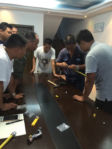 本次培訓由南京知行管業有限公司銷售部馮瑞先生擔任講師,培訓內容主要圍繞燃氣輸送不鏽鋼波紋軟管(暗埋管)裝配、施工兩大方麵開展。培訓講師馮瑞首先介紹了暗埋管的主要參數、caizhigouzaoyijichanpintedian,bingqiangtiaoleanmaiguanzaixiandaihuneiranqiguanxiananzhuangdezhongyaoxing,tongshi,duichanpinanquanshigonggefangmianzuolexiangxideshuoming。jinjiezhe,tajieshaoleanmaiguanzaihuneishigongdejidapushefangshi,zhuyaoyouanmai、anfujimingzhuangsanzhongzhuyaoanzhuangfangshi,bingzhenduinanfengkuangyuannengyuanshiyongqingkuang,youzhenduixingdiduianmaishigongzuolexiangxijiangjie,qizhongbaohananmaishigongzaihuneiranqiguanxiananzhuangbili、暗埋施工的安裝特點、技術要求、檢驗要求、使用要求等。在產品現場裝配這一環節中,培訓講師現場實物演示,更直觀、更清晰地讓員工了解產品裝配的規範與要求,同時,客服部維修組、工程部、施工組的同事也現場學習裝配,開展深入的交流與學習。