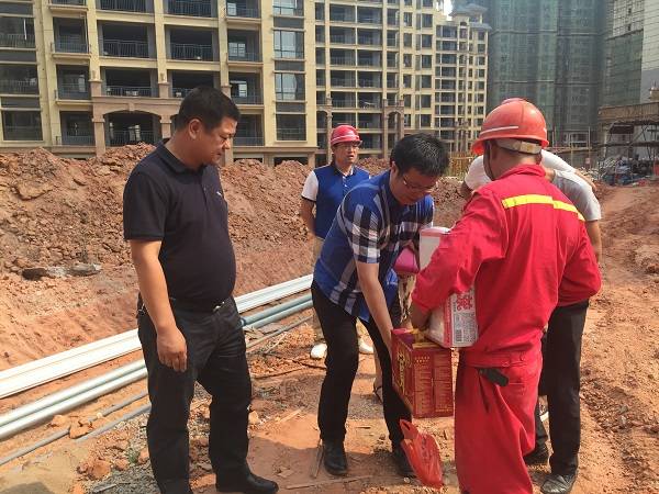 在施工現場,集團領導向工作人員詳細了解施工進度、存cun在zai的de困kun難nan和he問wen題ti,並bing把ba防fang暑shu降jiang溫wen物wu品pin送song至zhi員yuan工gong手shou中zhong,對dui兢jing兢jing業ye業ye戰zhan鬥dou在zai高gao溫wen酷ku暑shu環huan境jing下xia的de一yi線xian員yuan工gong進jin行xing了le誠cheng摯zhi的de慰wei問wen,囑zhu咐fu大da家jia做zuo好hao防fang暑shu工gong作zuo,並bing叮ding囑zhu他ta們men應ying合he理li安an排pai施shi工gong時shi間jian,注zhu重zhong勞lao逸yi結jie合he,在zai保bao證zheng安an全quan的de前qian提ti下xia完wan成cheng施shi工gong任ren務wu。
