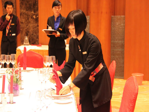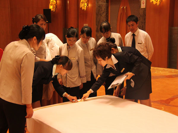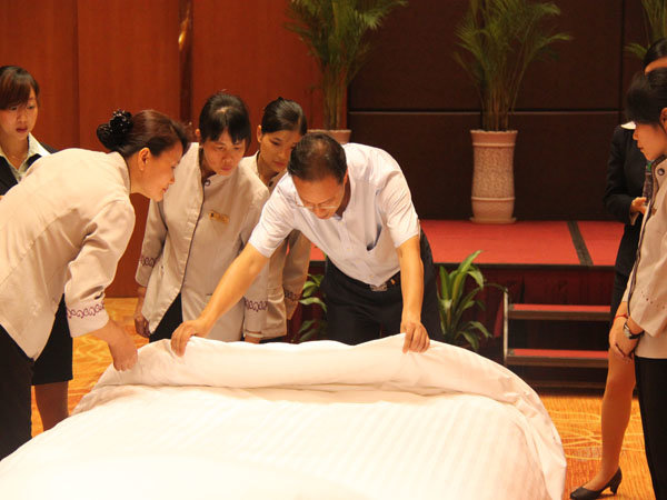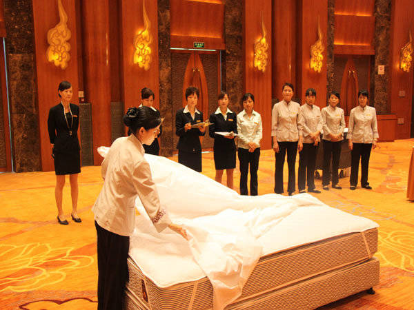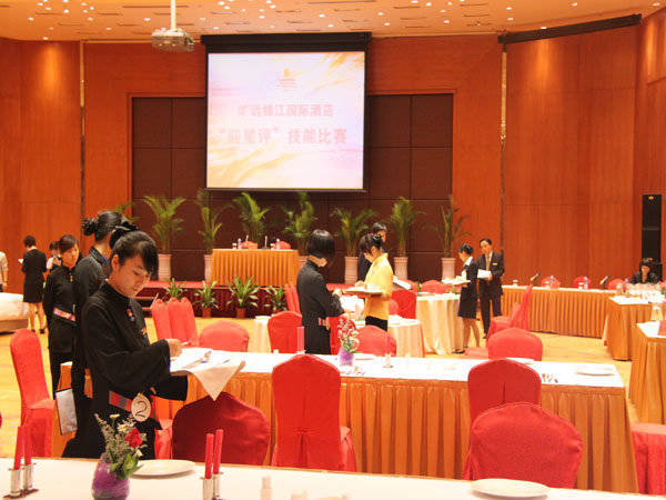 為了提高酒店員工的工作技能,更好地為賓客提供優質的服務,曠遠錦江酒店於8月10日下午14:00-16:00,開展了“迎星評”技能比賽。活動現場氣氛熱烈,參賽選手表情專注,嚴陣以待,緊張有序做好每一競賽細節;旁觀員工摩拳擦掌、躍躍欲試,紛紛為自己的團隊加油鼓勁。經過點鈔、鋪床、客房找差錯、中餐擺台等緊張的競賽角逐, 11名員工脫穎而出,獲得了評委的一致認可,在8月12號的星評動員大會上,獲得了公司的相應獎勵。