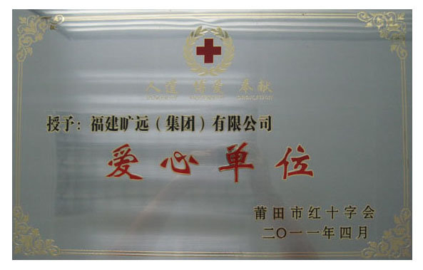 曠遠集團榮獲莆田市紅十字會“愛心單位”稱號