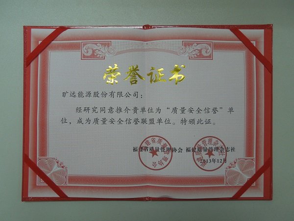 曠遠能源被推介為“質量安全信譽”單位