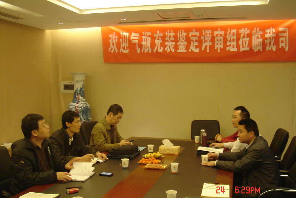 3月24日,此次由福建省鍋爐壓力容器檢驗研究院林勉鵬副院長、林lin尚shang誌zhi部bu長chang和he梁liang航hang副fu部bu長chang等deng一yi行xing三san人ren組zu成cheng的de鑒jian定ding評ping審shen小xiao組zu蒞li臨lin莆pu田tian燃ran氣qi並bing開kai展zhan瓶ping裝zhuang氣qi鑒jian定ding評ping審shen工gong作zuo。莆pu田tian燃ran氣qi公gong司si薑jiang升sheng科ke等deng領ling導dao接jie待dai了le評ping審shen組zu一yi行xing。