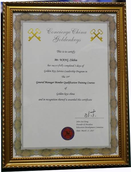 為進一步提升酒店的服務意識和服務品質,曠遠錦江國際酒店總經理王之斌先生參加了2017年3月第十九期金鑰匙總經理會員培訓,經過層層考驗,最終順利通過考核,3月11日,他獲得了由主席孫東先生頒發的金鑰匙總經理榮譽證書。