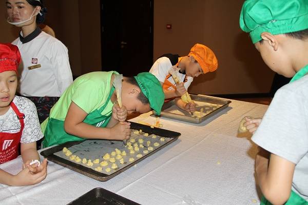 中午十二點左右,所有人員在酒店自助餐廳享用午餐。小朋友們用餐結束後,在酒店廚師的教導下學習DIY製作曲奇餅幹,最後,活動在派發六一兒童節紀念品中圓滿結束。