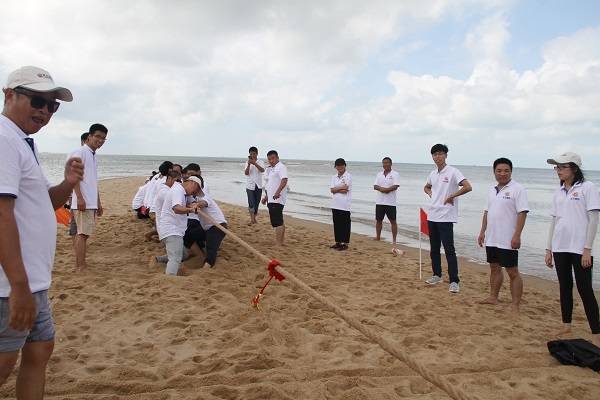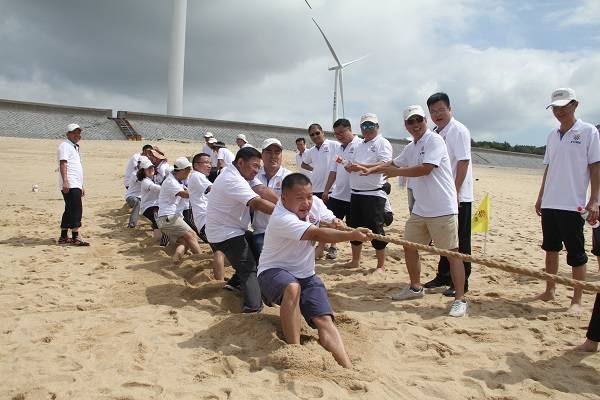 23日上午7:40,所有成員出發九重山,在九重山山腳下徒步至山頂,比賽規則為最先到達山頂的隊伍(全隊成員)獲勝。一行人員浩浩蕩蕩向著目標前進,一路上隊員們互相打氣、互hu相xiang扶fu持chi,堅jian持chi走zou向xiang了le終zhong點dian。海hai神shen隊dui以yi全quan員yuan最zui快kuai到dao達da山shan頂ding的de優you勢shi取qu得de該gai項xiang目mu的de勝sheng利li。緊jin接jie著zhe,所suo有you成cheng員yuan趕gan赴fu東dong戶hu黃huang金jin沙sha灘tan,開kai展zhan沙sha灘tan拔ba河he比bi賽sai。比bi賽sai過guo程cheng中zhong,所suo有you成cheng員yuan勁jin往wang一yi處chu使shi,有you人ren被bei拔ba河he繩sheng擦ca傷shang,有you人ren摔shuai倒dao在zai了le沙sha灘tan上shang,但dan卻que絲si毫hao未wei動dong搖yao他ta們men為wei團tuan隊dui爭zheng取qu榮rong譽yu的de信xin念nian,他ta們men將jiang傷shang痛tong拋pao在zai了le腦nao後hou,竭jie力li爭zheng取qu,最zui終zhong,海hai神shen隊dui贏ying得de了le拔ba河he比bi賽sai的de冠guan軍jun。